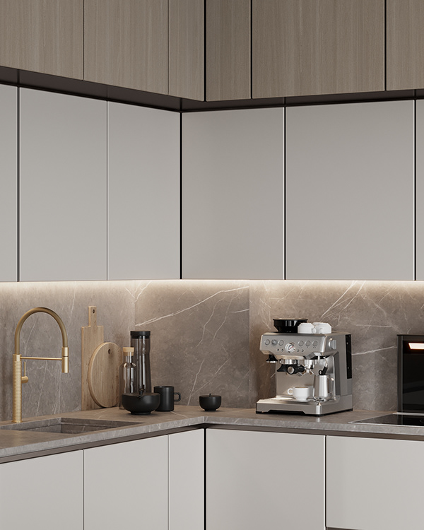 Unveil minimalist mastery in culinary design. Experience the beauty of simplicity, where clean lines and practical efficiency harmonize. Elevate your culinary creations in a space defined by modern aesthetics and functional brilliance.